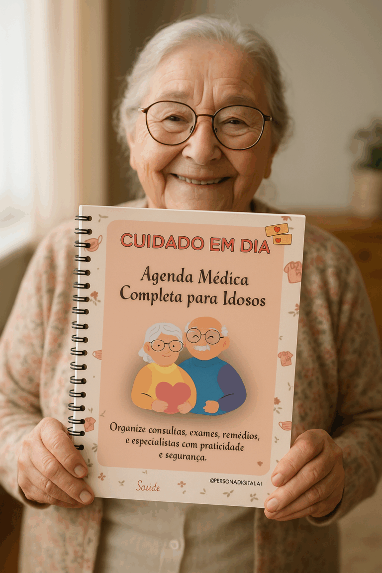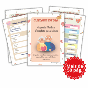 Consultas, exames, efeitos colaterais, orientações médicas, telefones de emergência… tudo ali, organizado, claro, sem confusão.